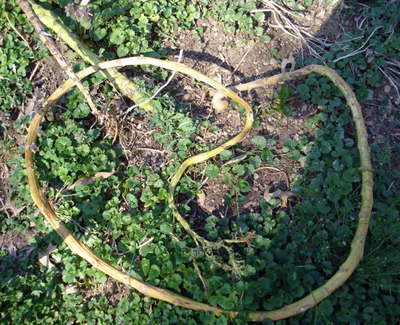 This spring was one of the wettest on record and I didn't try going into my garden which was on low ground and covered with large puddles. But when Easter was over and the sun shone forth again, I went to check things out. I really couldn't believe the stalks of kale and collards that I saw lying on the ground, many still green. My husband pointed out one in particular which had formed a circle, saying, "that stem is 6 feet long." I wanted to check, and I measured three times to be sure I wasn't imagining it. The stalk of that kale plant is 8 feet 9 inches. Holy mackerel! That is what happens when you use ETS Plus for Plants. I have never seen anything like it. I took pictures to prove it.
